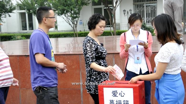生活老师赵雅莉也同样遭遇着不幸,同样是下岗工人,好不容易找份工作,但在快递公司打工的丈夫患了淋巴癌,上有老,下有小,丈夫还在医院接受一次又一次的化疗。他们的病情牵动着北小实外每位教职员工的心,在学校董事会的号召下,由德育办主持,教导处、行政办、后勤办的共同参与下,向全校师生以及家长发出了倡议书,得到了大家的积极响应,大家纷纷伸出援助之手。特别是2012届4班学生,发动了班级亲人积极参与爱心捐款,共筹得两万多块爱心款。