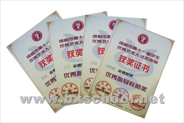 美术组老师组织15名学生参加成都市第十一届学生优秀艺术人才选拔赛,其中有14名同学获奖。王古月和何启雯同学获得一等奖,熊思朵、袁瑞、周俊成等5名同学获得二等奖,张祖瑞、胡浩东、魏雨彤、王先狄等8名同学获得三等奖。王丽、付超、苏畅、刘雪峰老师分别荣获优秀教师指导奖