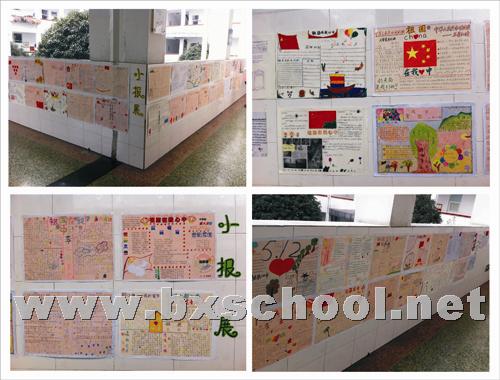 瞧!三年级教室外长长的走廊边,那洁白的墙壁上,贴着一张张美丽的小报。这些小报都凝结着我们三年级孩子、家长和老师们一起去收集资料,阅读报纸、杂志,看电视,了解我们自己的祖国,了解最近发生的国家大事。家长和孩子一起走出家门,去寻找和发现家乡的美。并亲自动手制作出自己对祖国的了解,从小爱自己的祖国,祖国时刻在自己的心中;还有自己眼中家乡的美,家乡那许多美丽迷人的风景奇观、名胜古迹。正如顾成武说:“天下兴亡,匹夫有责。”是的,我们要让孩子们知道有国才有家。也如伟大诗人王维说:“君子故乡来,应知故乡事。”李清照说:“故乡何处是,忘了除非醉。“谁不说自己的家乡好呢?通过这次手抄报活动,大大地激发和培养了三年级孩子热爱祖国、热爱自己的家乡。
