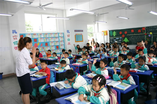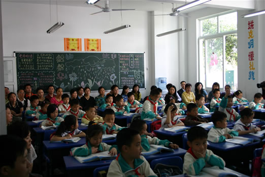 4月29日上午,1-2年级9个班的教学开放一开始就让早早来到学校的几百位家长激动不已,他们走进校园、教室,走近孩子。听他们用天真活泼的童声唱颂儿歌;胡主席的八荣八耻拍手歌,歌颂春天的童谣,无处不散发着勃勃生机。各学科:语文、数学、外语、音乐、美术、体育……老师们生动精湛的教学激发了孩子们互动,吸引了家长们也象回到学生时代,老师、家长、学生心灵在碰撞、心和心拉得更近,不时从教室里传出家长、孩子们会意的笑声。主题队会:2·1班的《妈妈爱我,我爱妈妈》、2·2班的《以书为友》、2·3班的古诗名句诵读、2·4班的外语口语活动,同学们自己主持,自己表演,乐得家长怎么也合不拢嘴。