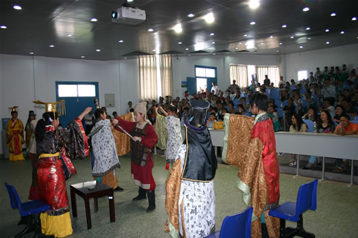 4月30日,仍然是晴朗、艳阳高照。3-6年级的教学开放日如火如荼,更为热烈。教学、学习已不再是课业负担,师生 们教与学紧张着、也快乐着。语文课,6年级1班学生们自编自演课本剧《完璧归赵》,刀光剑影,远古的智者壮士斗智斗勇;语音室、计算机机房里、实验室里正成就着未来的科学精英;美术室、书法室、音乐舞蹈室群星闪烁、新星灿烂。