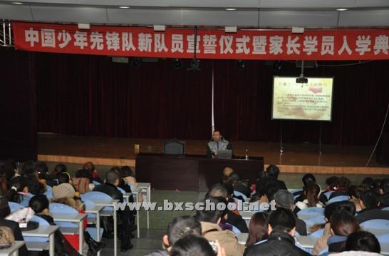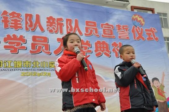 见证孩子的点滴进步,是为人父母最为幸福的时刻。2012年12月29日上午,都江堰北小实外开展了“中国少年先锋队北小实外校新队员宣誓仪式暨家长学员开学典礼”活动。学校219名一年级学生的家长,见证了孩子成为少先队员的难忘时刻,并亲手为孩子戴上鲜艳的红领巾。 新队员接过父母胸前的红领巾,全家人一同见证孩子的成长。父母摘下自己胸前的红领巾给孩子戴上,新队员向父母鞠躬感谢父母的养育之恩,并亲手为爸爸妈妈做了一张张"爱"的贺卡,他们用稚嫩的语言和可爱的画作表达着对父母的爱。新队员将人生中的第一个队礼献给队旗,我是有组织的人;献给父母,感谢养育之恩;献给老师和同学,感谢帮助之情。 看着孩子们戴上红领巾的欣喜表情,听着孩子们唱队歌时流露出的那份自豪,望着那一张张灿烂的笑脸……我们知道,这棵棵“小苗”正在茁壮成长,这些新时代的雏鹰们将展开双翅,冲入云霄,成长为新时代的小主人。 “我们是共产主义接班人,继承革命先辈的光荣传统,爱祖国、爱人民,鲜艳的红领巾飘扬在胸前……” 入队仪式结束,小朋友们和家长一起在心愿墙上写下美好的感言,在队旗下合影留念。随后,在学术厅以“家长孩子共成长”为主题的家长学员专题讲座正式开始了。整场讲座中,北小实外的家长学员们表现出了较高的素质,他们静心聆听,真心交流,专心笔记,用心思索。 本次活动既充分体现了我校“全员育人、全程育人、全方位育人”的教育理念,又满足了广大家长的实际需求,有效地实现了家庭和学校教育的整合。活动结束后不少家长表示受益匪浅,希望学校以后能多开展此类活动。