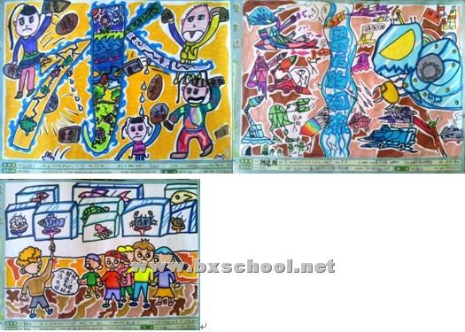 我校美术组组织学生参加2013中国儿童环保绘画大赛。主题为“水——生命之源,从哪里来?” 我组经过对该比赛教学研究,全组教师集体备课,在二至四年级展开专题讲座后组织学生参加了该比赛。 教师对学生绘画进行主题讲解、创意引导和绘画指导。从绘画技巧、表现手法方面进行引导,保证参赛画作由学生自己创作,对画作原创性进行把关。本次活动取得了非常好的效果,一方面对学生进行了环保教育,另一方面在绘画过程中使学生感受了有别于以往的绘画创作。